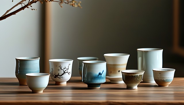 各式陶瓷杯与自然元素的结合,呈现独特的静物美。