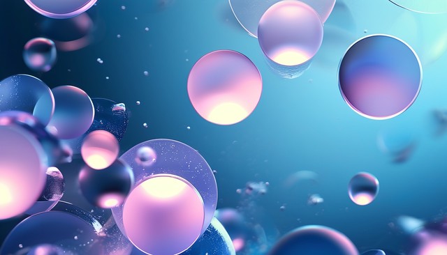 美丽的现代水晶玻璃抽象散景,几何圆形柔和的浅紫色在蓝色背景上用于图形商业技术数字设计插图网络模板背景