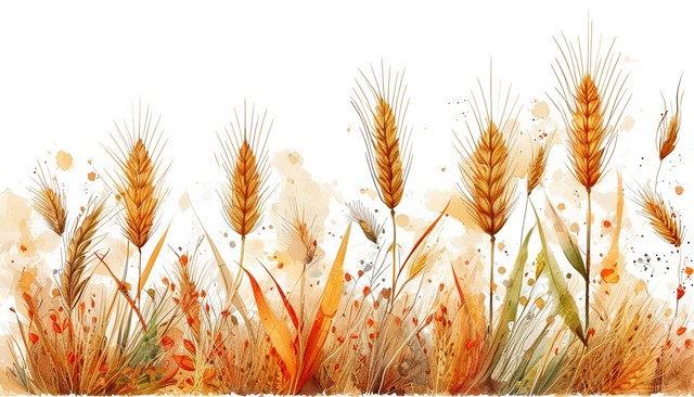 秋天小麦的抽象矢量水彩插图。手绘自然设计元素孤立在白色背景。