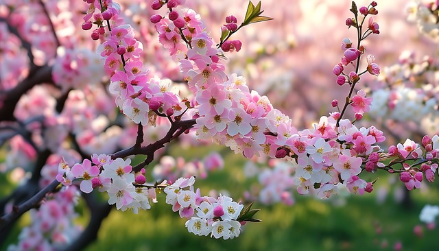 春季花海中的粉色与白色花朵交织,形成一幅自然的浪漫画卷,展现出大自然的美丽与生机。