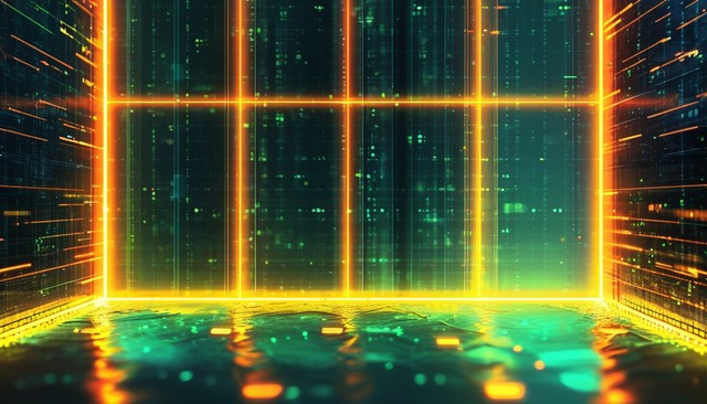 抽象背景。霓虹黄色浅绿色网络数字世界地图。黑客发光的科技橙色背景。模糊的纹理背景。数字的科学计算。介