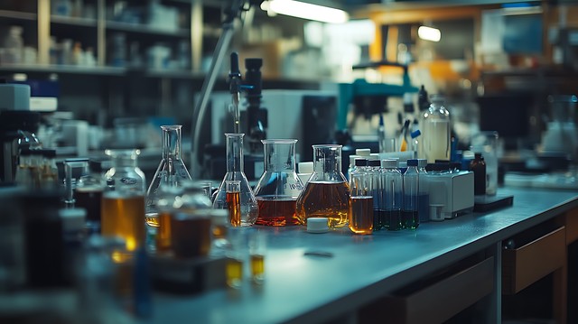 化学实验室中,各种试管和工具整齐摆放,象征着探索科学的无尽可能。