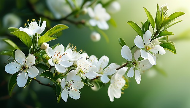 盛开的白色花朵与绿色叶子的自然美景,感受大自然的魅力。