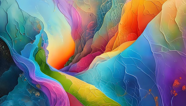 缤纷的色彩与自然纹理交织成抽象艺术,一幅展现大自然鬼斧神工的奇妙景象。