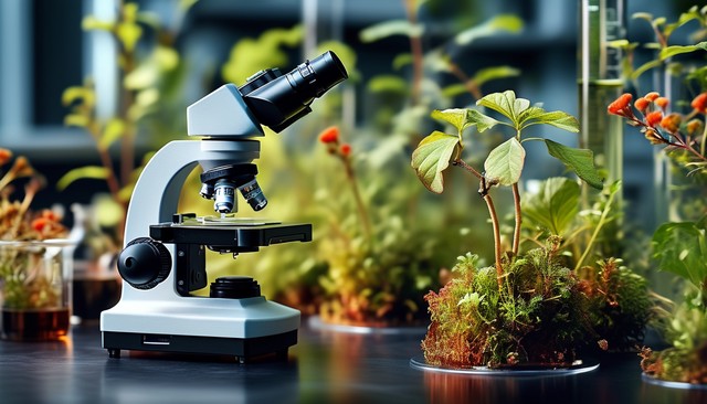 在实验室显微镜下对植物组织的研究。