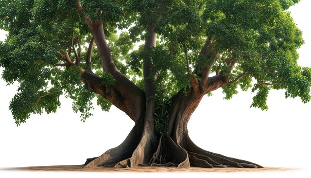 白色背景上孤立的大树。大树数据库泰国亚洲自然植物园组织元素