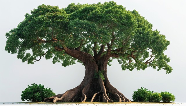 白色背景上孤立的大树。大树数据库泰国亚洲自然植物园组织元素