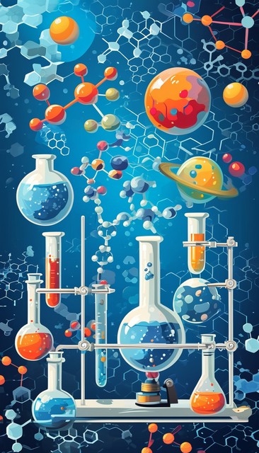 随机期刊化学元素背景。蓝色教育科学化学物理背景。矢量插图。