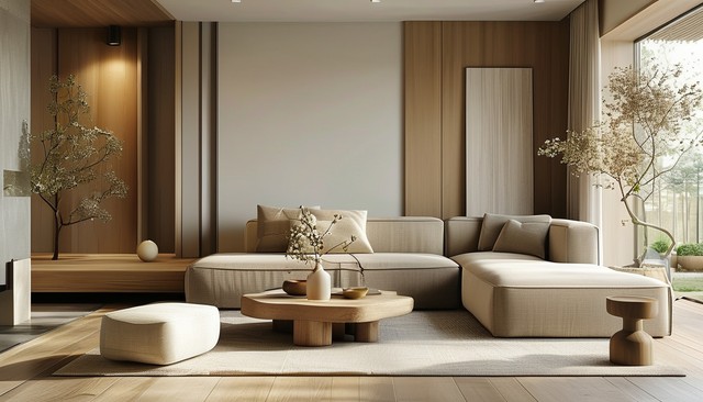现代简约风格的客厅,温馨舒适,搭配自然元素与柔和色调。