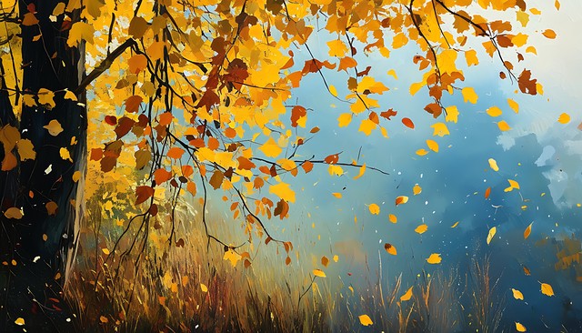 黄叶纷飞的秋日景象,植物与自然元素交织出唯美的风景画。