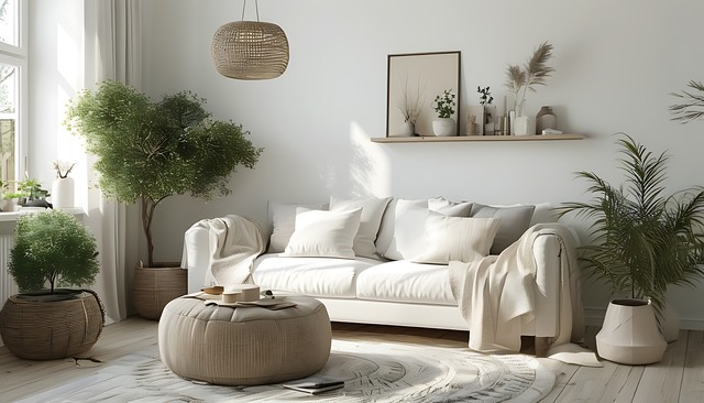 明亮的白色室内设计,融入自然元素与舒适家具,展现现代斯堪的纳维亚风格。