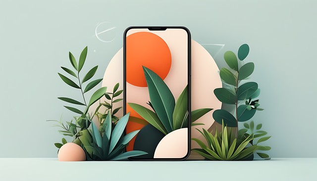 极简艺术风格下的手机插画,融合自然植物与几何形态