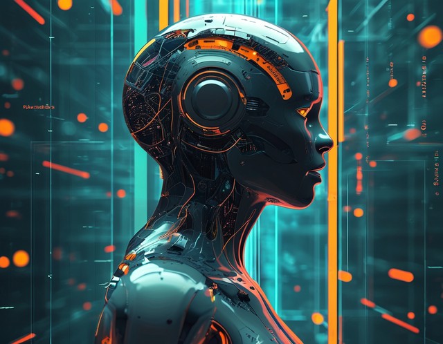 人工智能技术抽象背景。数字风格的人工智能生成艺术创意横幅概念。带有文字位置的高科技海报。未来主义设计