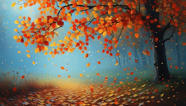 秋叶飘落如梦似幻,色彩斑斓的画卷展现自然之美。