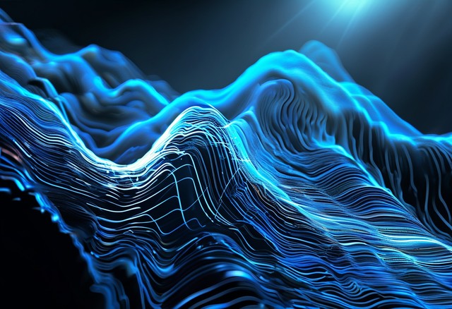 数字技术蓝色节奏波浪线抽象图形海报网页