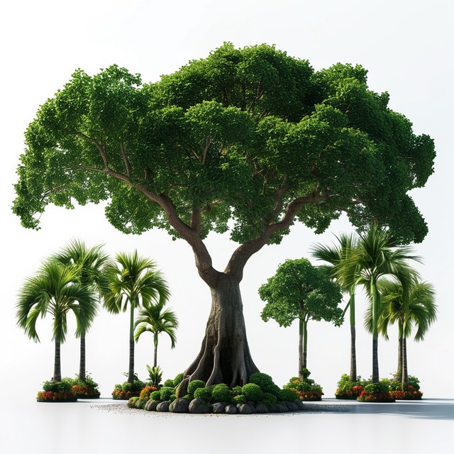 孤立的大树在白色背景,树木的集合。大树数据库植物园组织泰国亚洲自然元素,热带树木孤立用于设计,