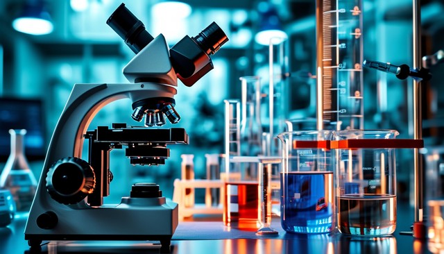 医学科学实验室在显微镜下观察与先进设备工作的测试生物技术分析