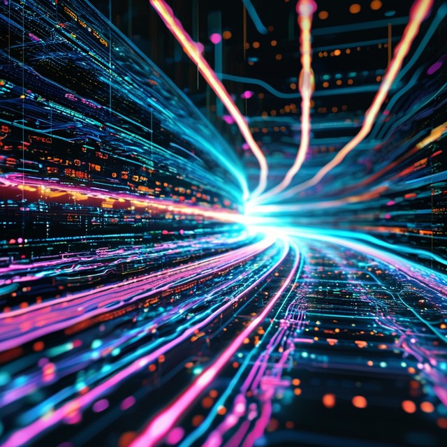 数字数据流线背景。大数据技术线。抽象神经网络。高速光迹。虚拟现实网络空间中的信息流。矢量插图。