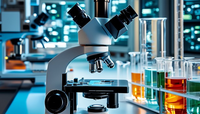 医学科学实验室在显微镜下观察与先进设备工作的测试生物技术分析