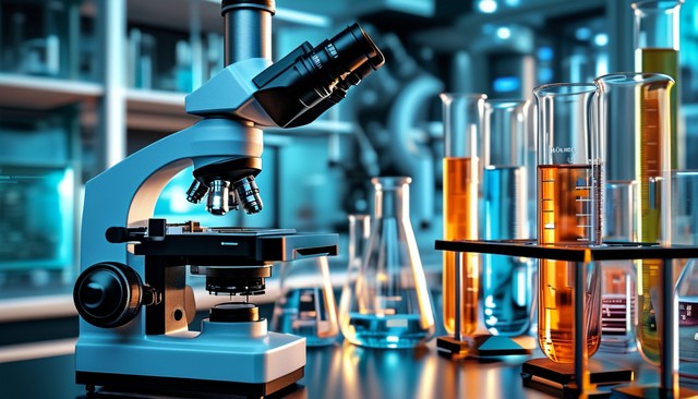 医学科学实验室在显微镜下观察与先进设备工作的测试生物技术分析