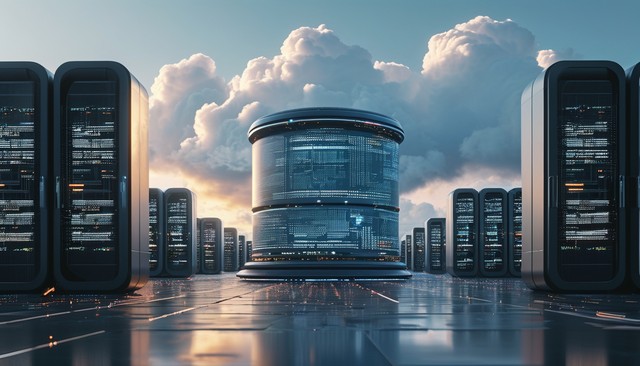 云技术。云计算、大数据中心、未来基础设施、数字人工智能概念。
