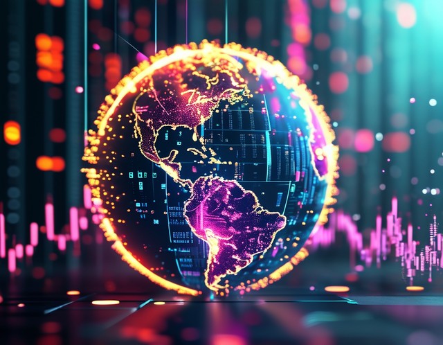 关于全球加密货币市场中数字技术主题的抽象信息图表。
