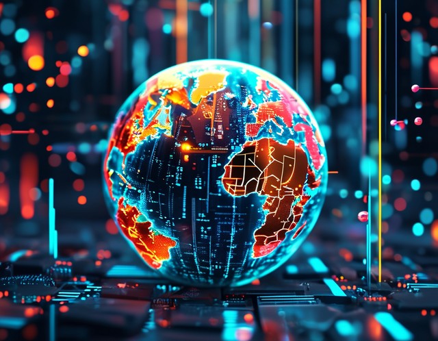 关于全球加密货币市场中数字技术主题的抽象信息图表。