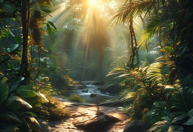 阳光照射在美丽的丛林里