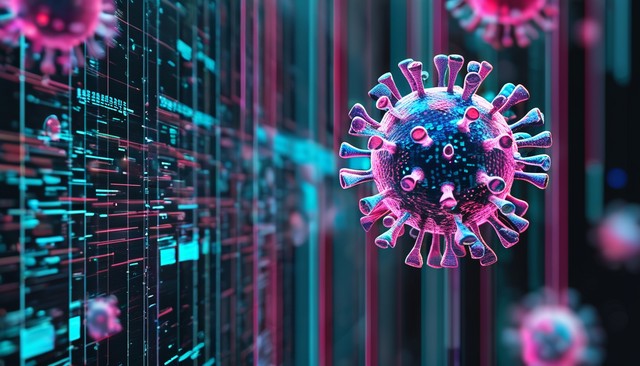 抽象安全数字技术背景。系统隐私。安全概念。正在进行的扫描病毒