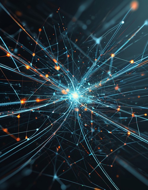 带有神经丛线条的深色背景。抽象技术网络连接点。带有网格的未来科学壁纸。数字技术和大数据分析图解