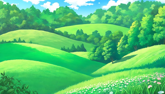绿色自然风景的山丘画卷,感受夏日公园的生机与活力。