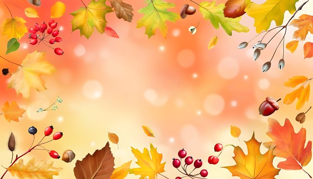 秋日落叶纷飞的绚烂背景,融入多种秋果元素,呈现自然之美。