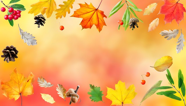 秋日落叶纷飞的绚烂背景,融入多种秋果元素,呈现自然之美。