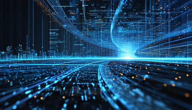 网络空间技术与蓝色数字光图案,创造未来的商业和科学概念。