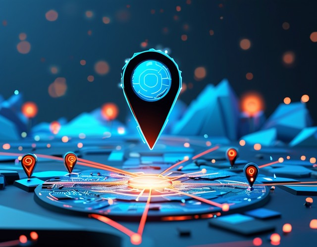 线框图针位置线和点抽象蓝色矢量图标。数字技术世界全球定位系统导航低多边形概念。三角形方向和指针标志插