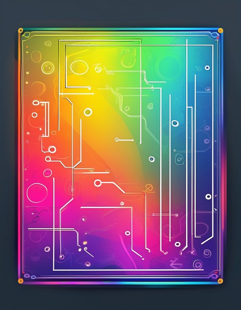 渐变色背景上的抽象电路板。手绘数字技术概念。矢量