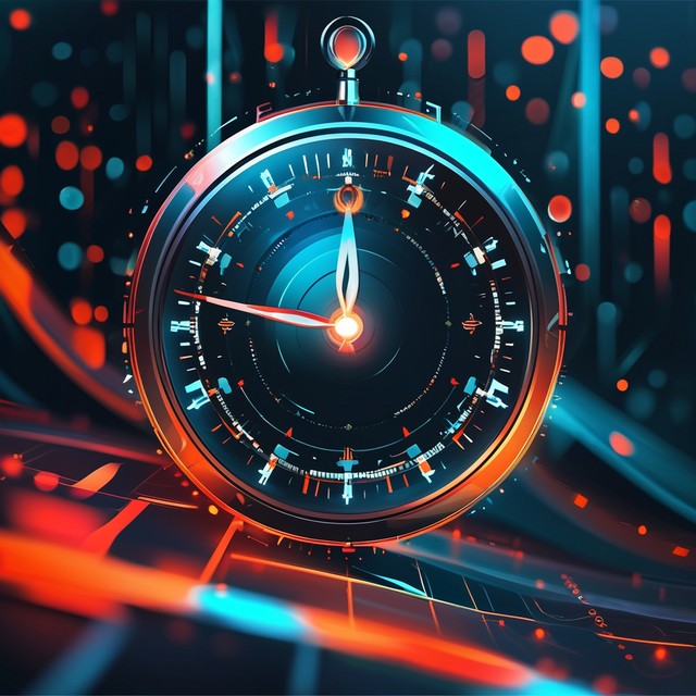 在线数字抽象技术背景的未来时钟符号。创新技术理念。新年即将到来。矢量插图。
