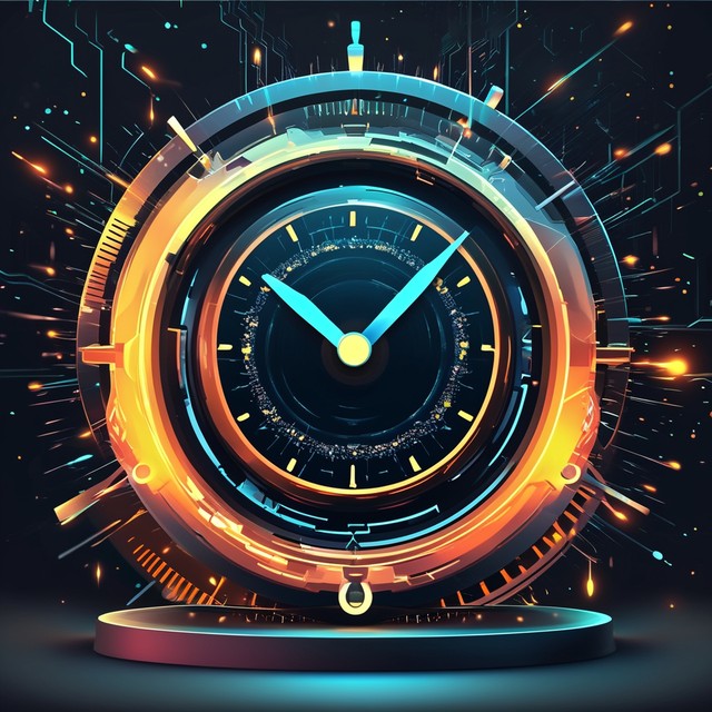 在线数字抽象技术背景的未来时钟符号。创新技术理念。新年即将到来。矢量插图。