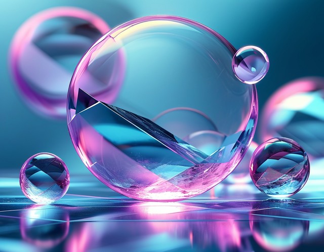 美丽的现代水晶玻璃抽象散景,几何圆形柔和的浅紫色在蓝色背景上用于图形商业技术数字设计插图网络模板背景