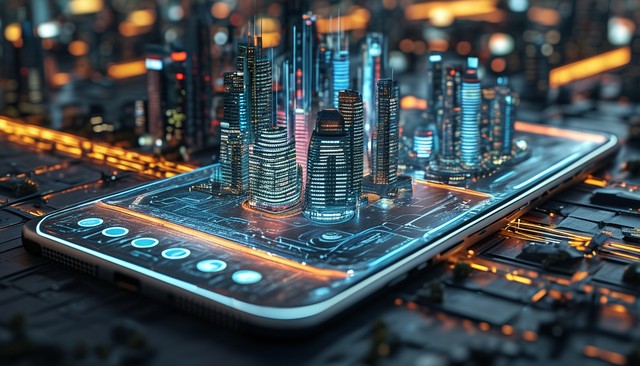 全息投影未来智能手机,数字未来的概念。全息技术。数字技术商业背景。