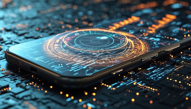 全息投影未来智能手机,数字未来的概念。全息技术。数字技术商业背景。