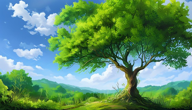 自然的绿色世界,茂盛的生命之树,生机勃勃的自然风景。