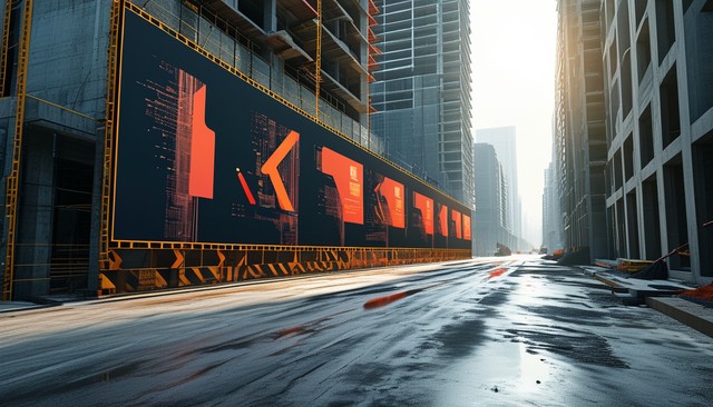 施工现场和数字技术概念。横幅或广告的广角视觉。