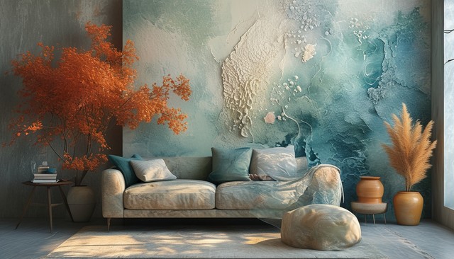 这幅画面展示了一种抽象的纹理,融入了自然的元素和艺术的深邃表达。