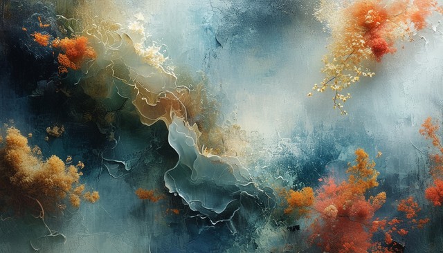 这幅画面展示了一种抽象的纹理,融入了自然的元素和艺术的深邃表达。