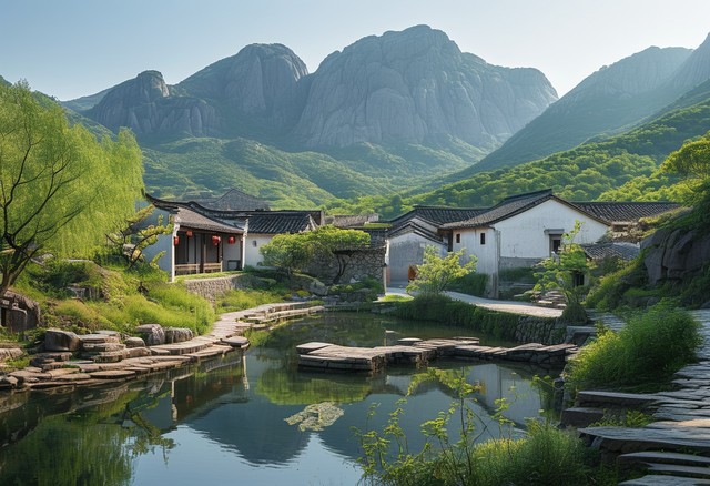 浙江绍兴上虞东澄古村,覆卮山景区,自然风景建筑