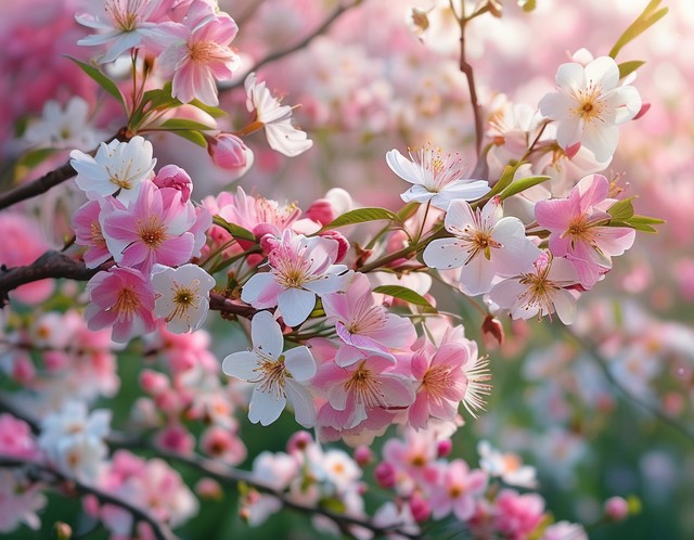 春季花海中的粉色与白色花朵交织,形成一幅自然的浪漫画卷,展现出大自然的美丽与生机。