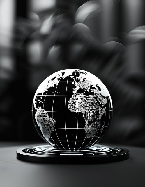 数字技术、社交网络、全球联系、简单的商业标志。黑白背景上的黑色图标。