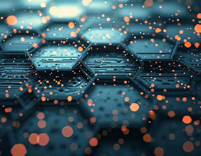 数字技术背景。带线条和点的抽象六边形背景。科学、医学或技术设计