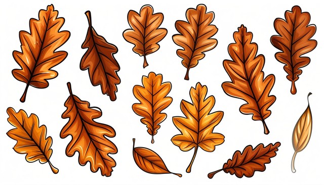 秋橡树叶矢量图标,卡通落叶,棕色干燥的树叶,设计元素,白色背景、标志或符号上孤立的自然物体。线条艺术